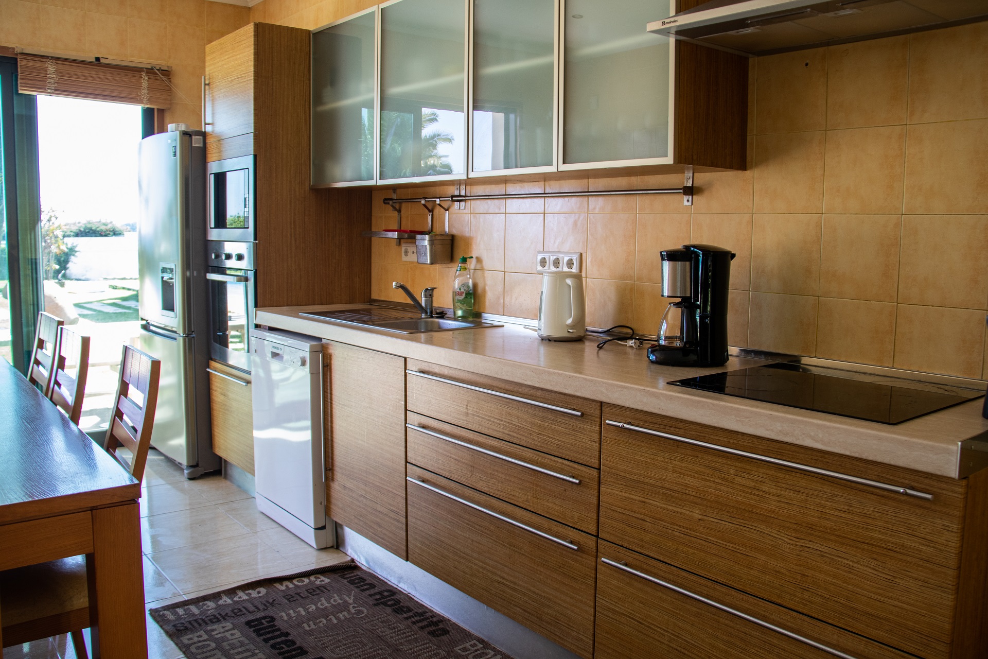 Equipamento doméstico : Louça / talheres, utensílios e trem de cozinha cafeteira eléctrica, chaleira eléctrica, torradeira, espremedor de sumos, máquina para fazer crepes, grelhador, fogão a gás, fogão eléctrico, placa, forno, micro-ondas, fritadeira eléctrica, exaustor, frigorífico, congelador, máquina de fazer gelo, lava-louça, máquina de lavar roupa,